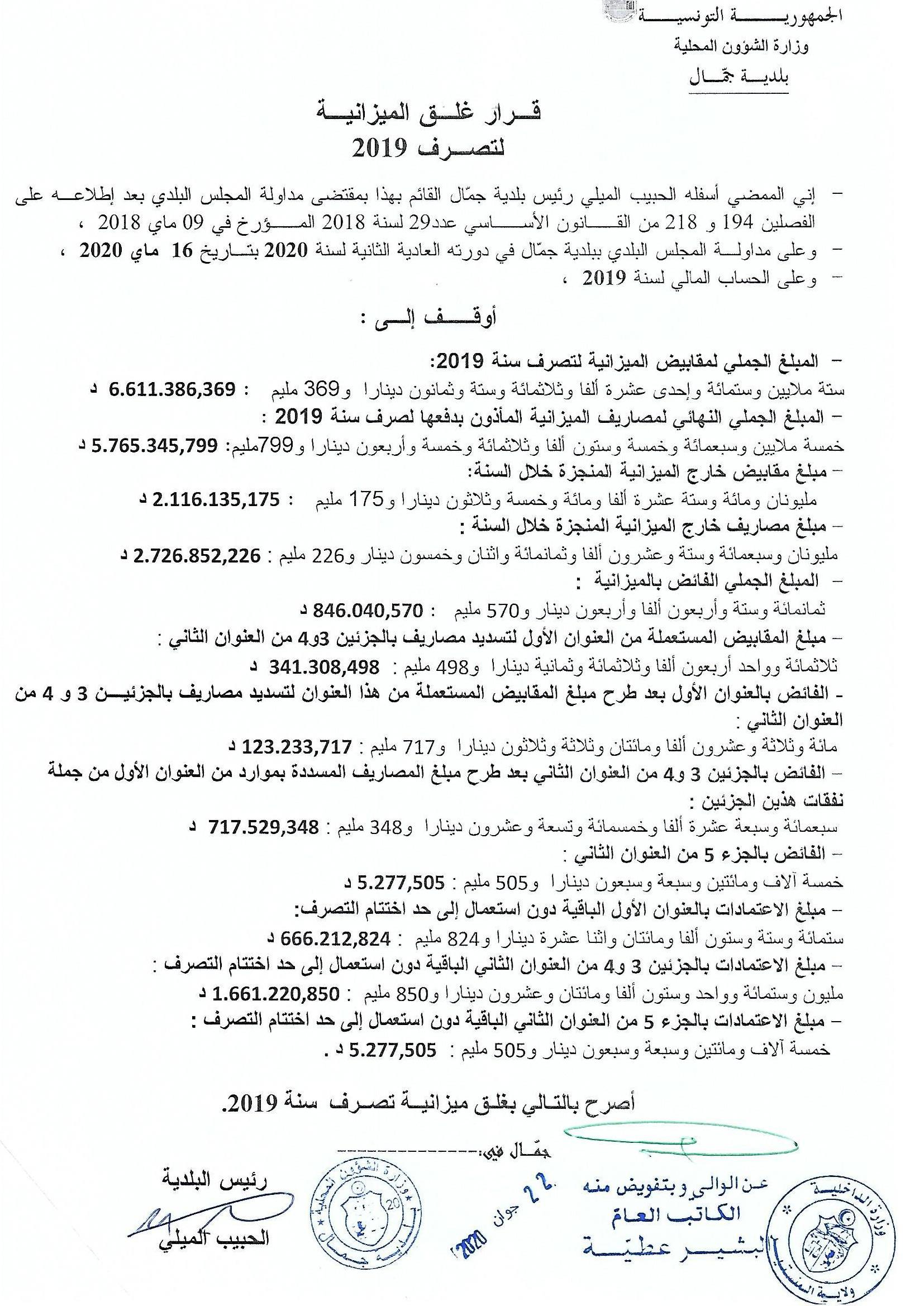 الحساب المالي لسنة 2019 تحميل
