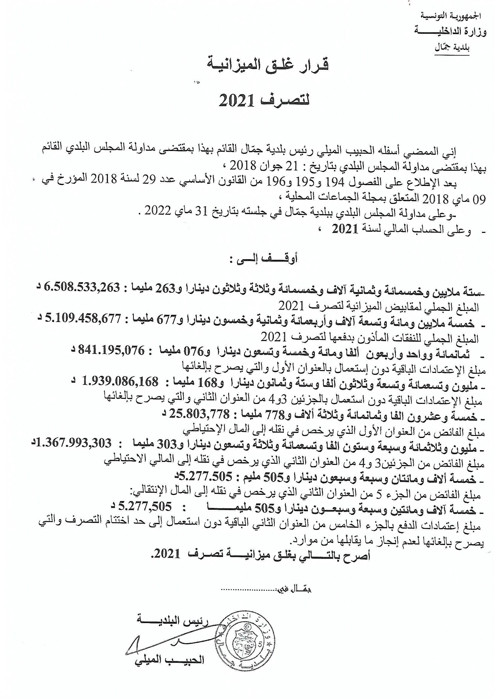 الحساب المالي لسنة 2021 تحميل